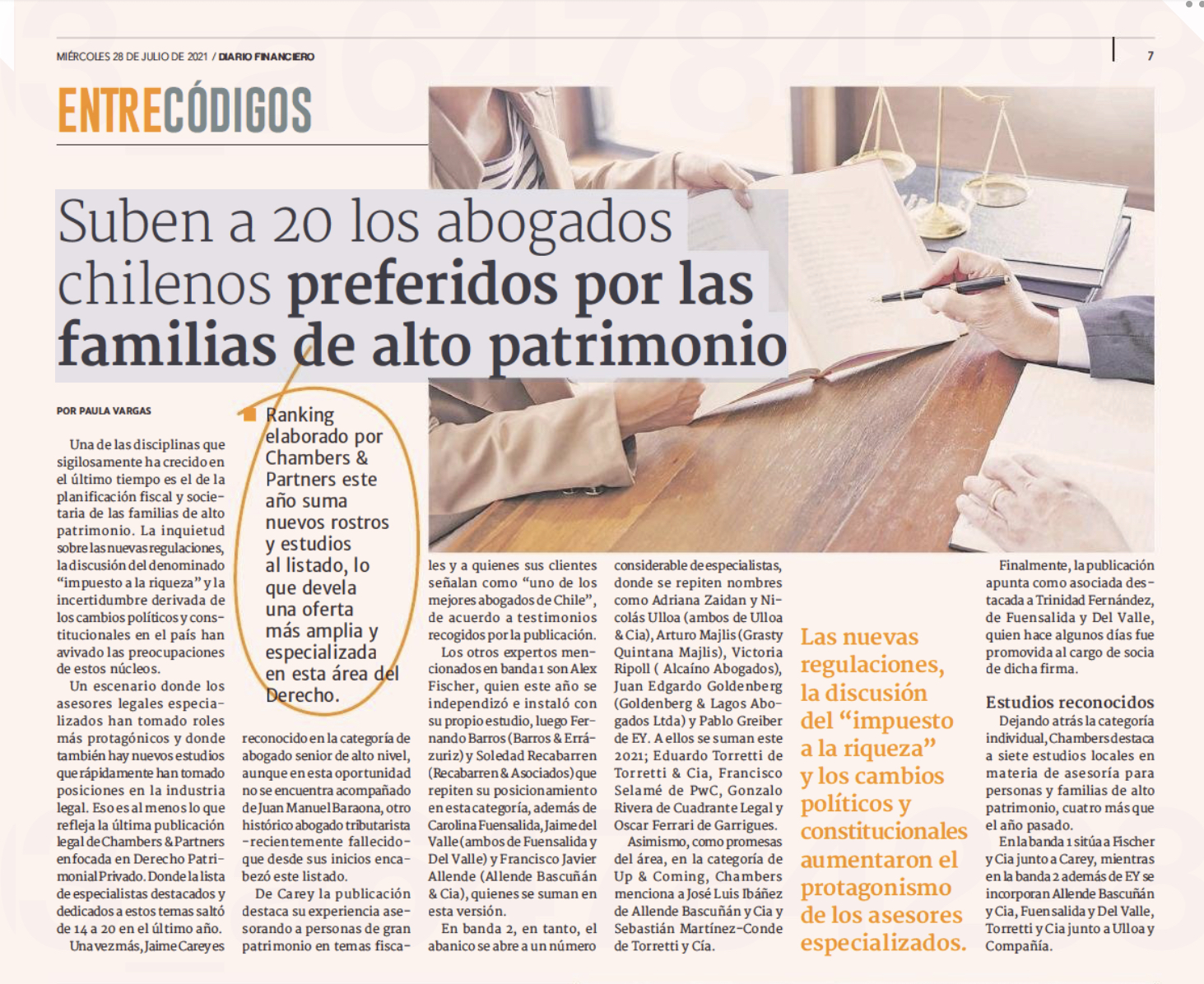 Eduardo Torretti and Sebastián Martínez-Conde among the 20 favourite Chilean tax lawyers for high nt worth families